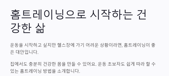- 운동이 지루하다면 유튜브 홈트레이닝 영상을 참고하세요