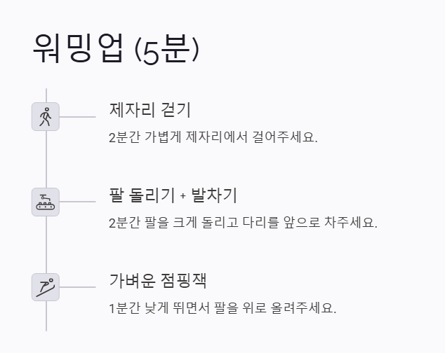 - 너무 무리하지 않고 천천히 강도를 높이세요