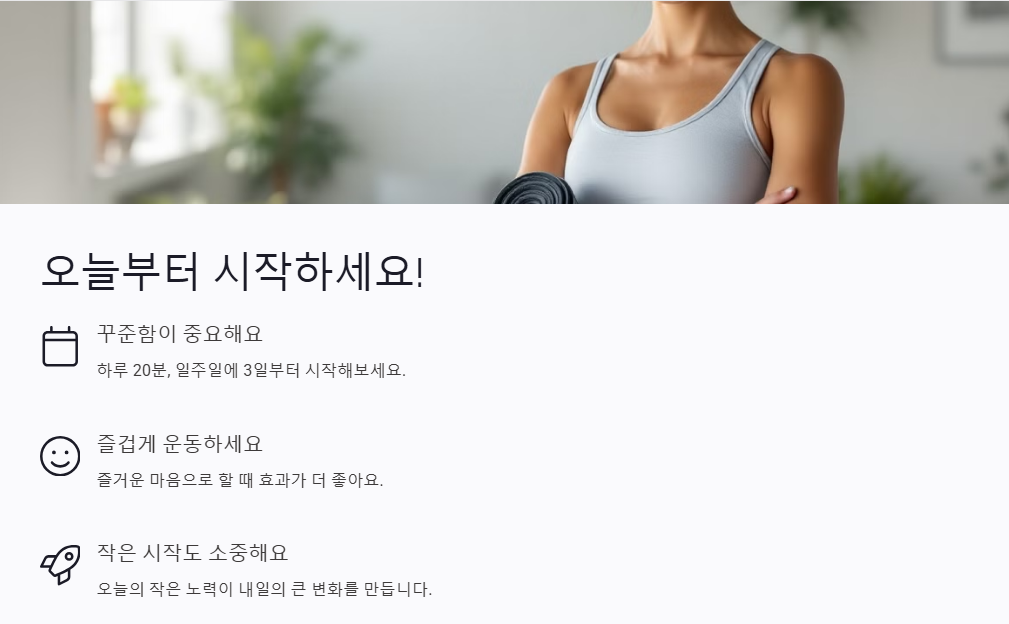 - 운동 전후 사진을 찍어 변화를 기록하세요